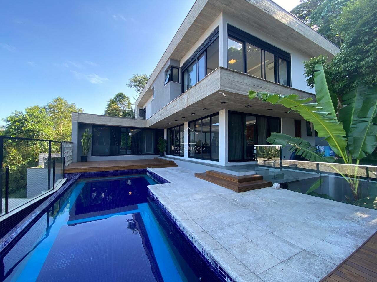 O imóvel incorpora soluções sustentáveis e tecnológicas, como coleta de água da chuva para uso em vasos sanitários e jardim, além de aquecimento solar com suporte elétrico.