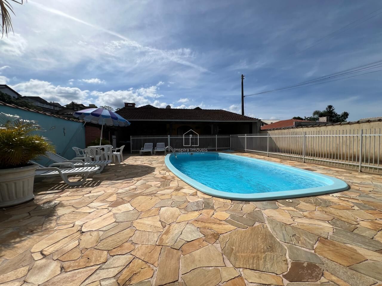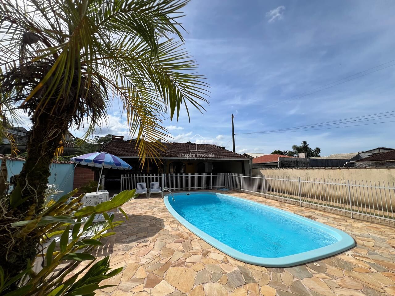 A casa de alvenaria conta com 4 quartos sendo 1 suíte, 2 banheiros, sala de estar, sala de tv, cozinha e copa conjugadas e área de serviço, são 105m² de área construídas e 500,10m² de terreno.